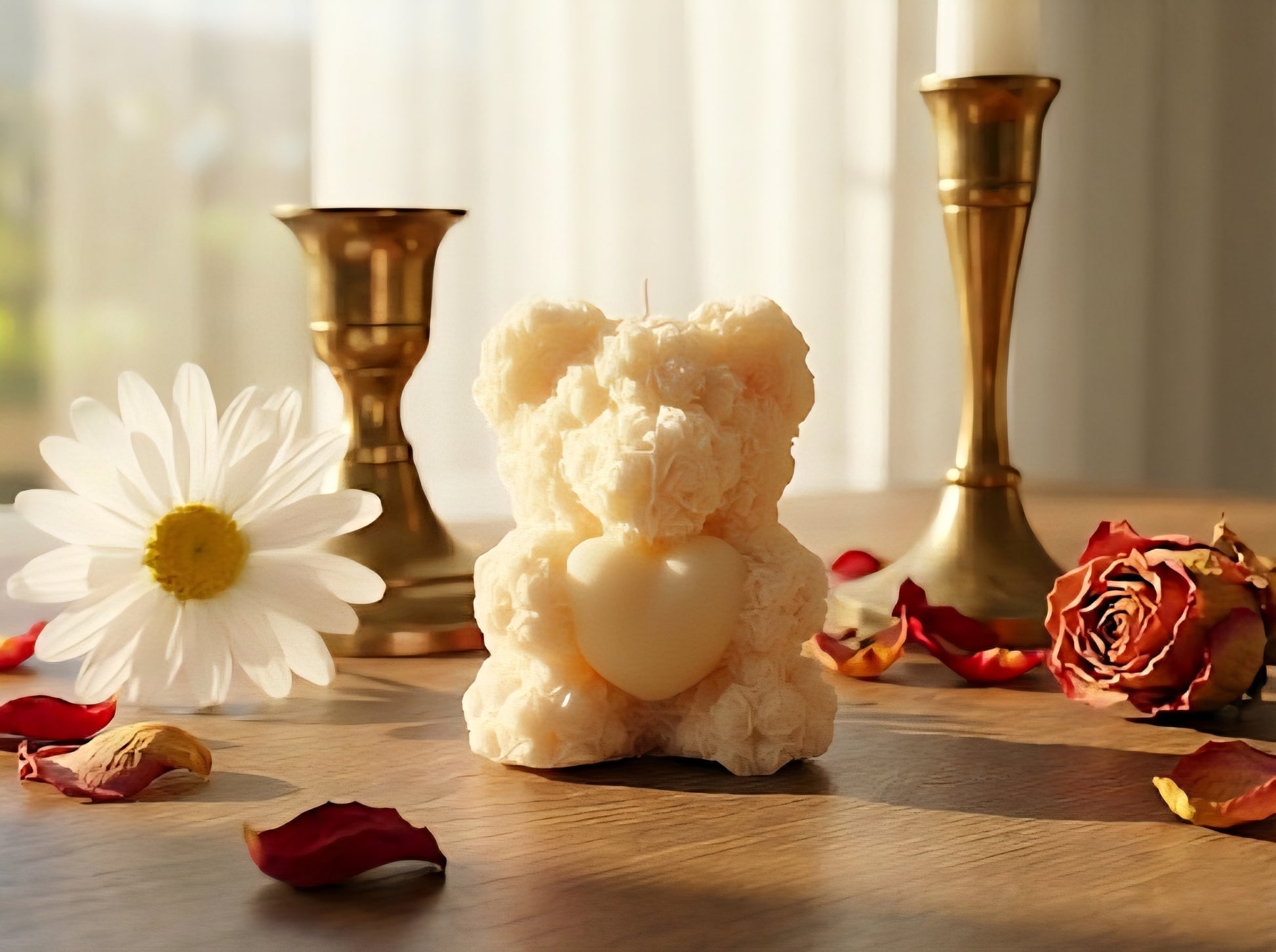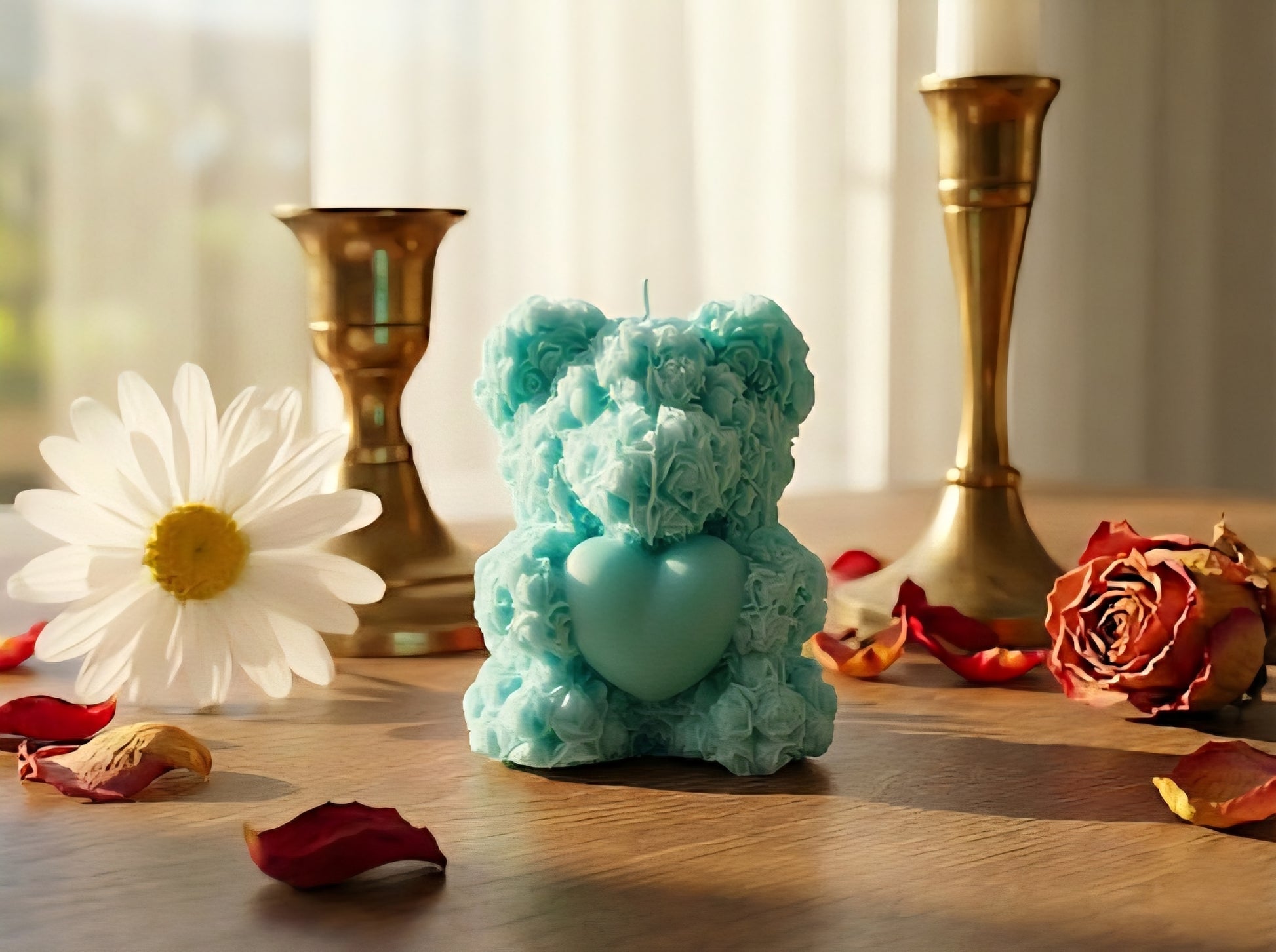 Der „Teddy of Love“ ist eine charmante Handmade Candle, die einen Bären mit einem Blumenstrauß zeigt. Als stilvolle Deko Kerze setzt sie warme Akzente in jedem Wohnraum und ist die ideale Geschenkidee für Herzensangelegenheiten.